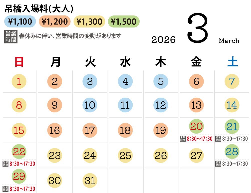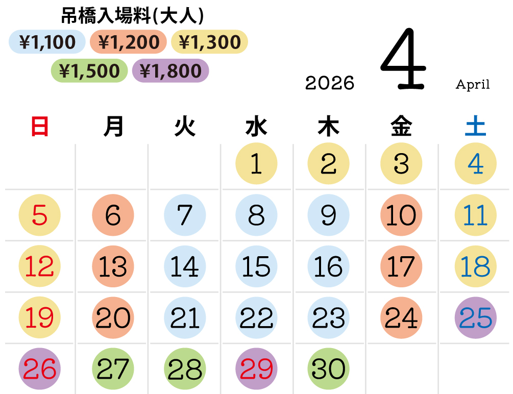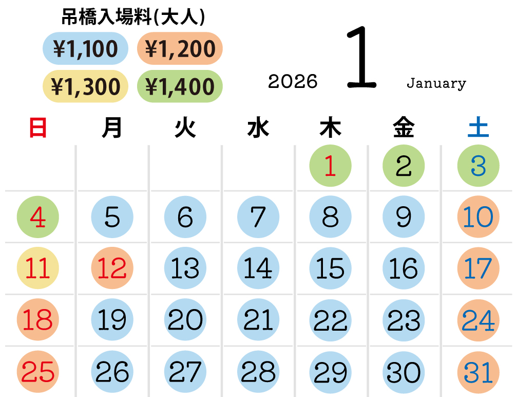 全長400m歩行者専用吊橋「三島スカイウォーク」の吊橋入場チケットの料金です。変動価格制を導入しております。