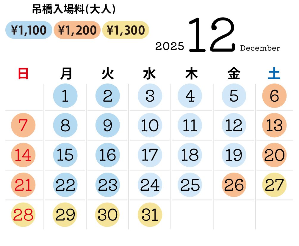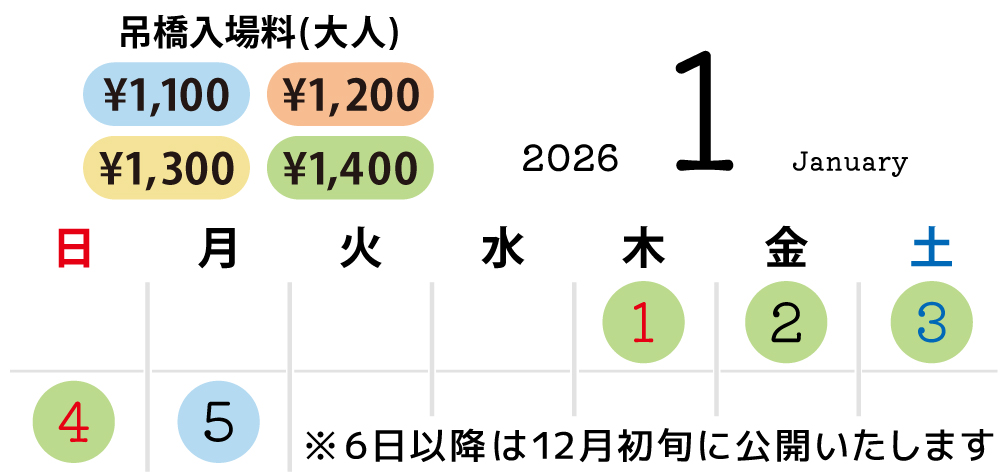 全長400m歩行者専用吊橋「三島スカイウォーク」の吊橋入場チケットの料金です。変動価格制を導入しております。