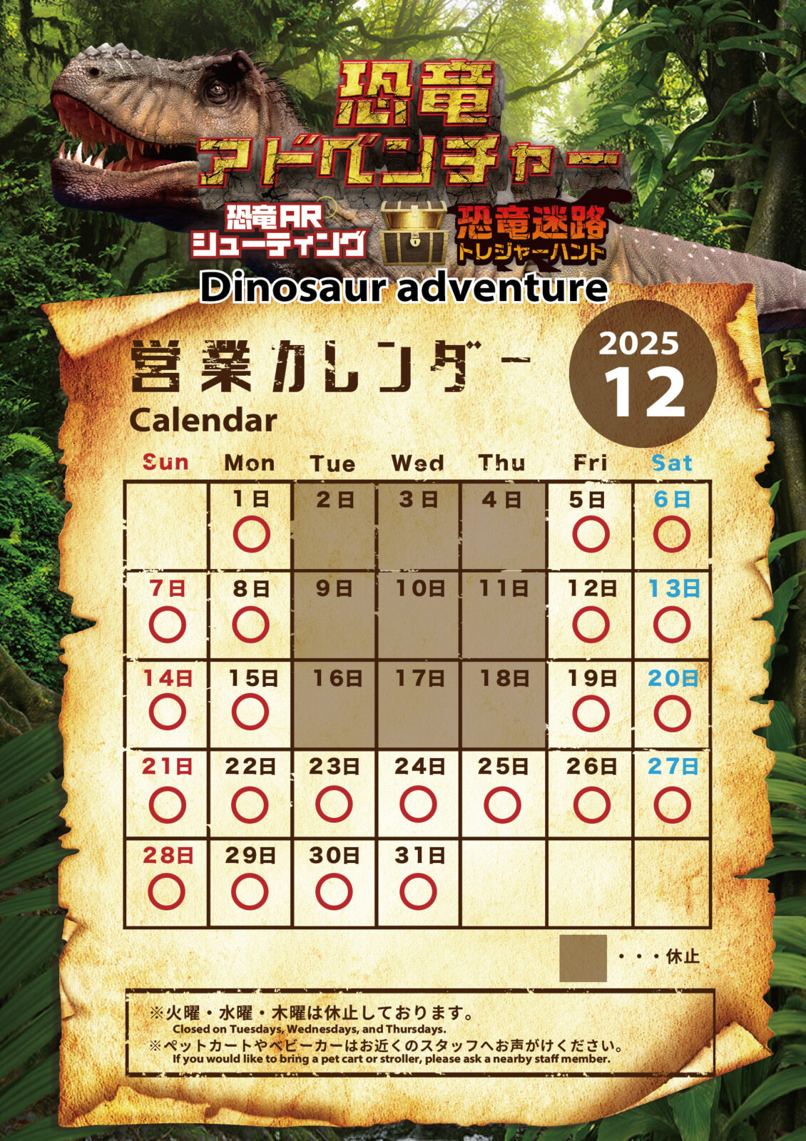 12月の恐竜アドベンチャーの営業日について下記の通り営業いたします。