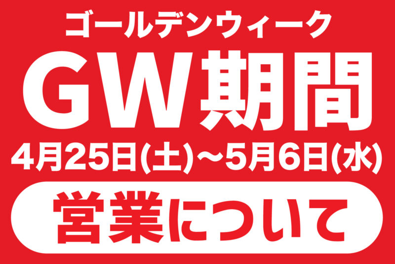 ゴールデンウィーク期間の営業について以下の通り、ご案内いたします。