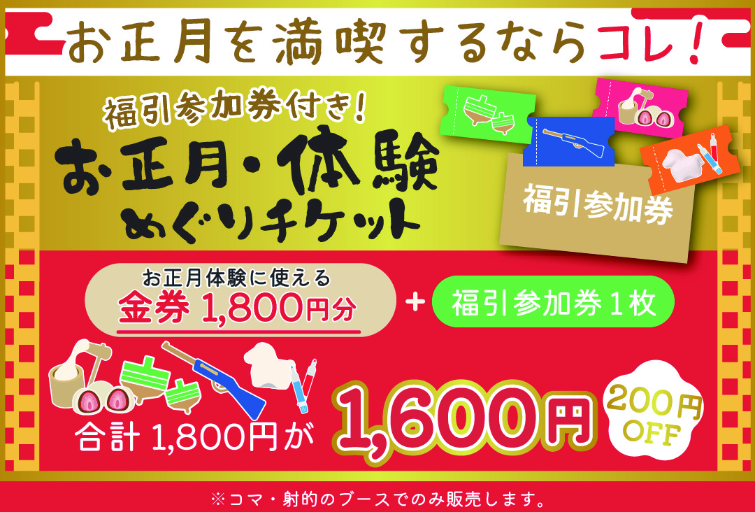 お正月・体験めぐりチケット購入で福引参加券1枚もらえる!