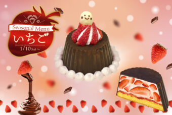 “パリパリッ”と食感楽しいチョコドーム!大庭農園の三島産・朝採れLサイズ苺を贅沢に4粒使用。苺ジャムを忍ばせた生クリームは、甘すぎず爽やかな後味。外はパリッとショコラ、中はふわっと軽やか。割った瞬間、苺があふれ出す“ご褒美級”ショートケーキです。